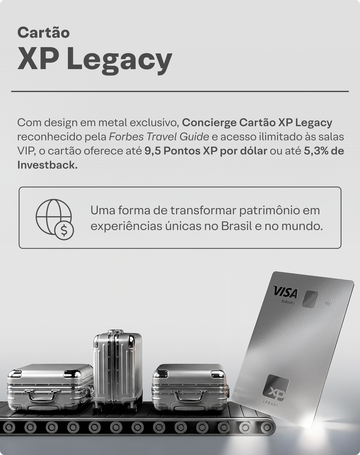 Do primeiro investimento às decisões mais estratégicas, os Cartões XP evoluem com você.