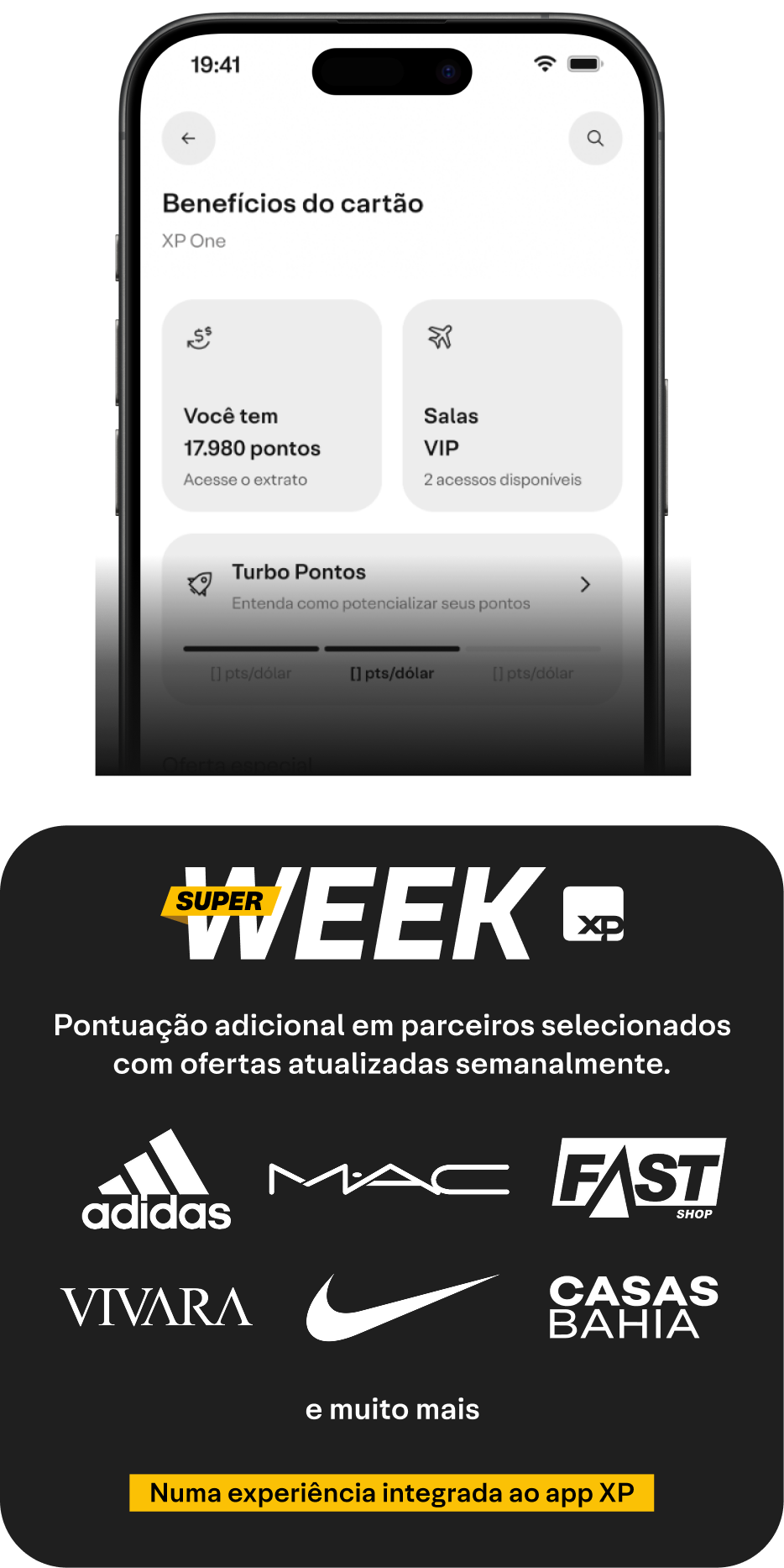 Este benefício é exclusivo do titular do cartão. As compras elegíveis feitas nos cartões adicionais podem contribuir para a geração de Pontos XP, mas todo o acúmulo é creditado somente ao titular, sem acúmulo independente para os adicionais.