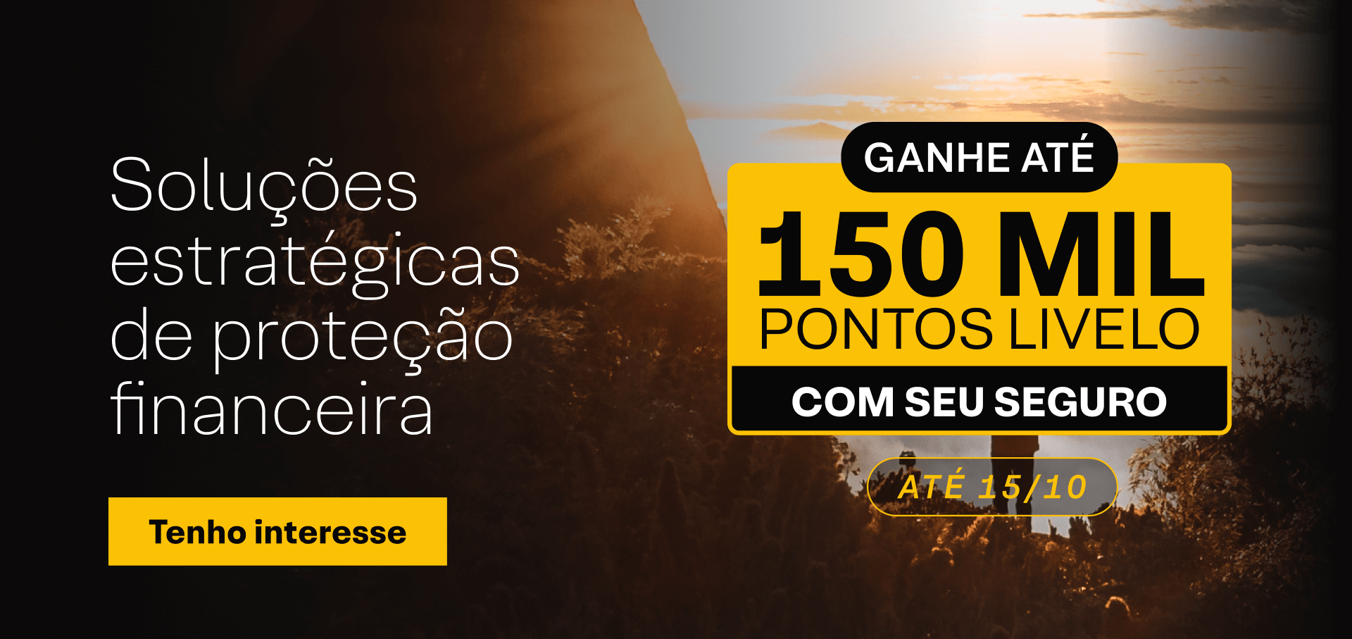 Conheça nossas soluções de proteção financeira e sucessão patrimonial. Você pode ganhar até 150 mil pontos Livelo, aproveite!